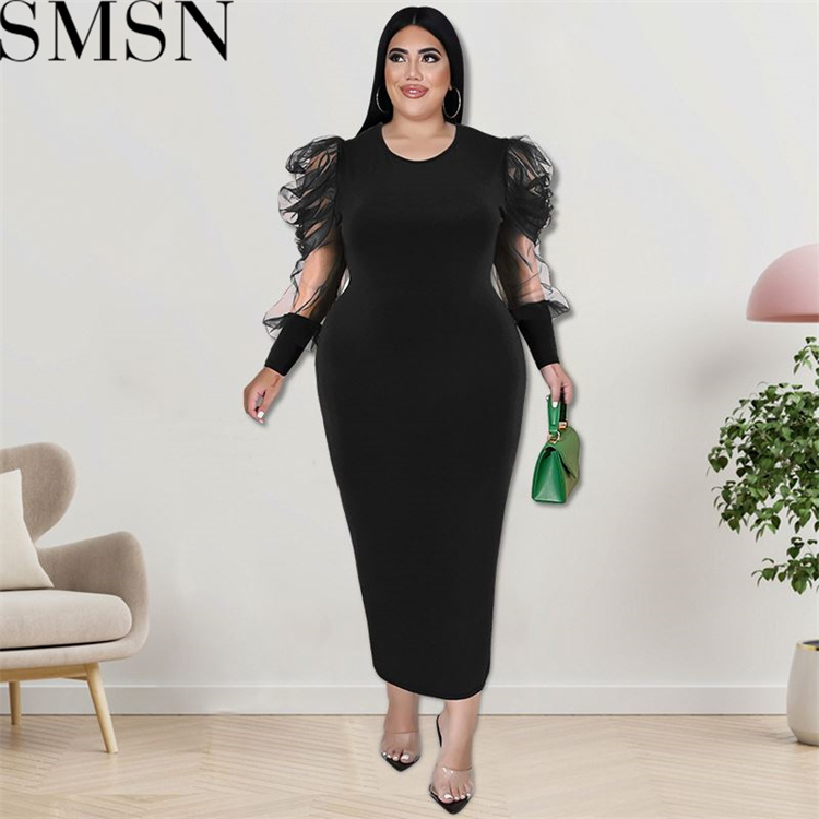 Plus Size Dress fall women clothing wholesale round neck long sleeve hit net dress