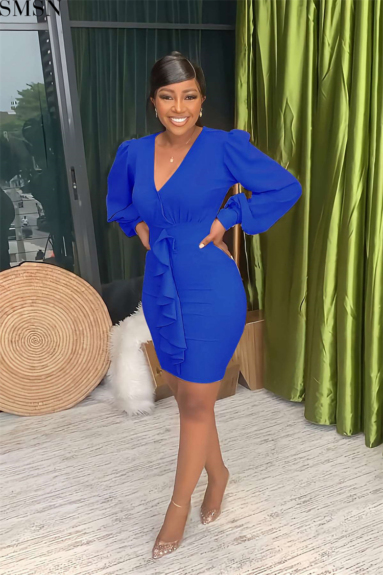 Plus Size Dress solid color sexy half open collar temperament ruffled women dress