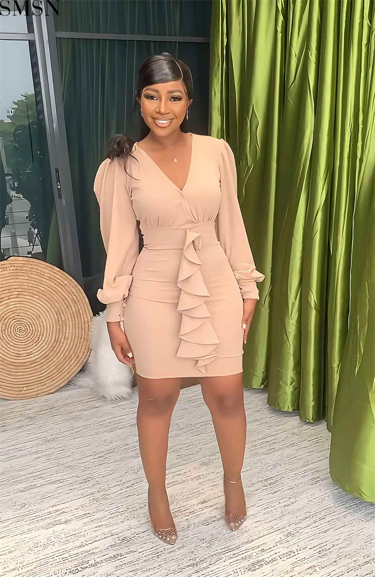 Fashion women dress sexy ruffled V neck topless sling bag hip nightclub dress