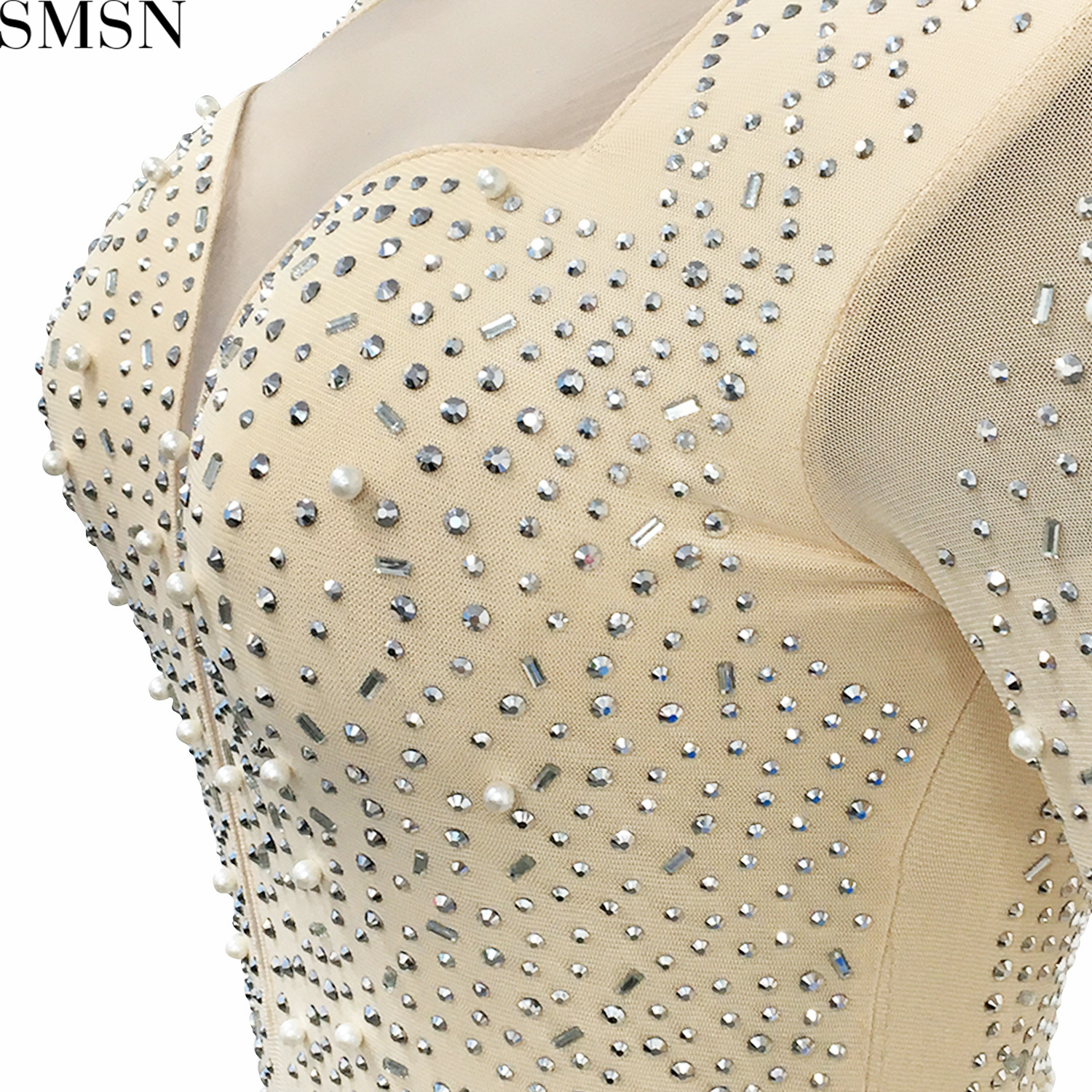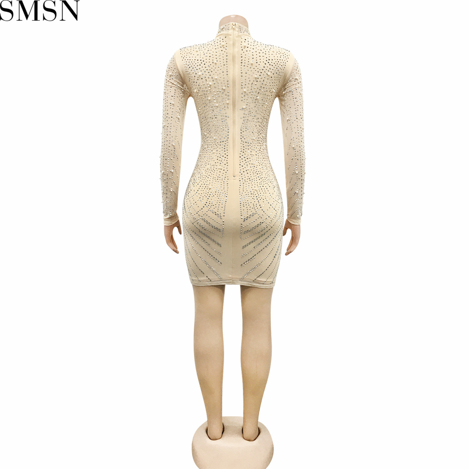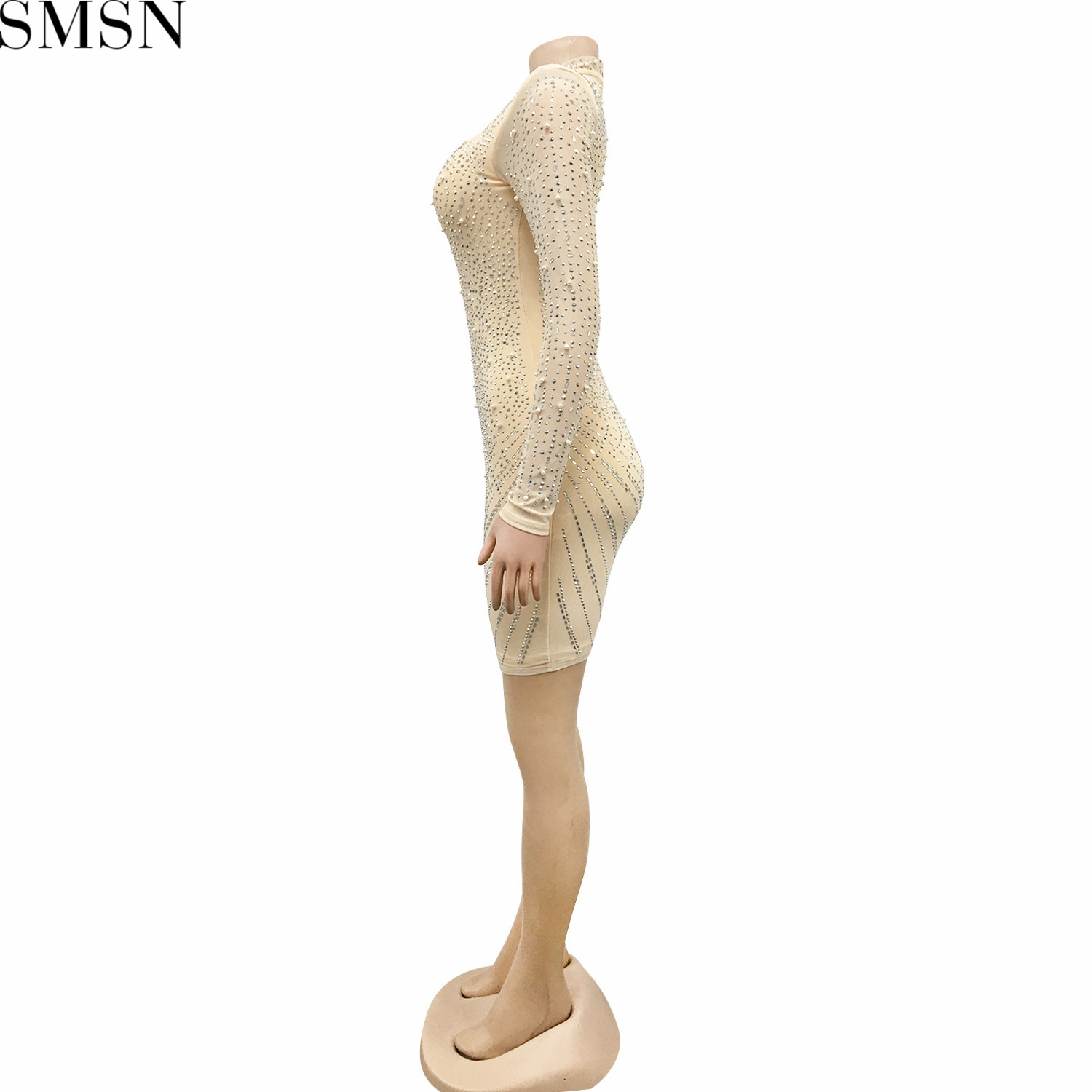 Plus Size Dress deep V nightclub party formal dress hot rhinestone mesh see-through women's clothing