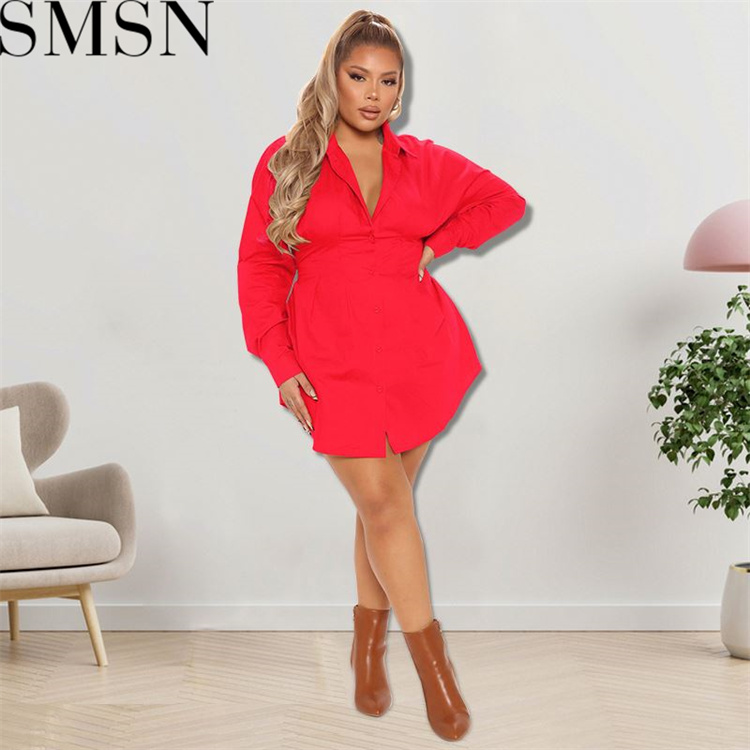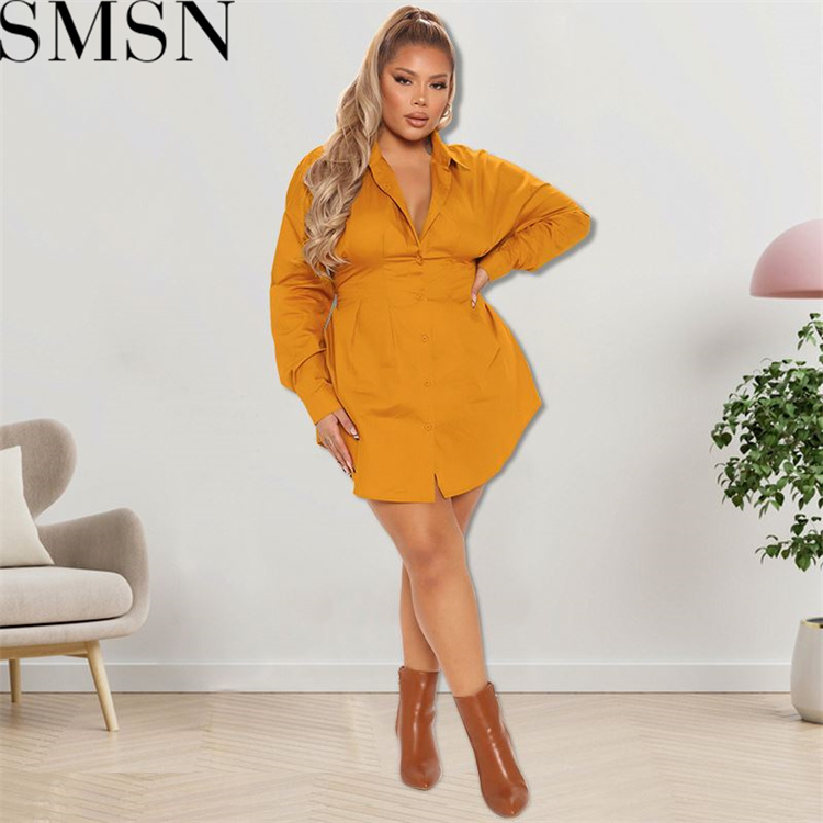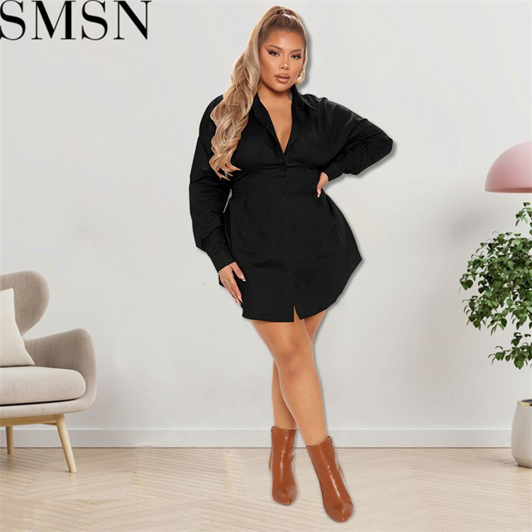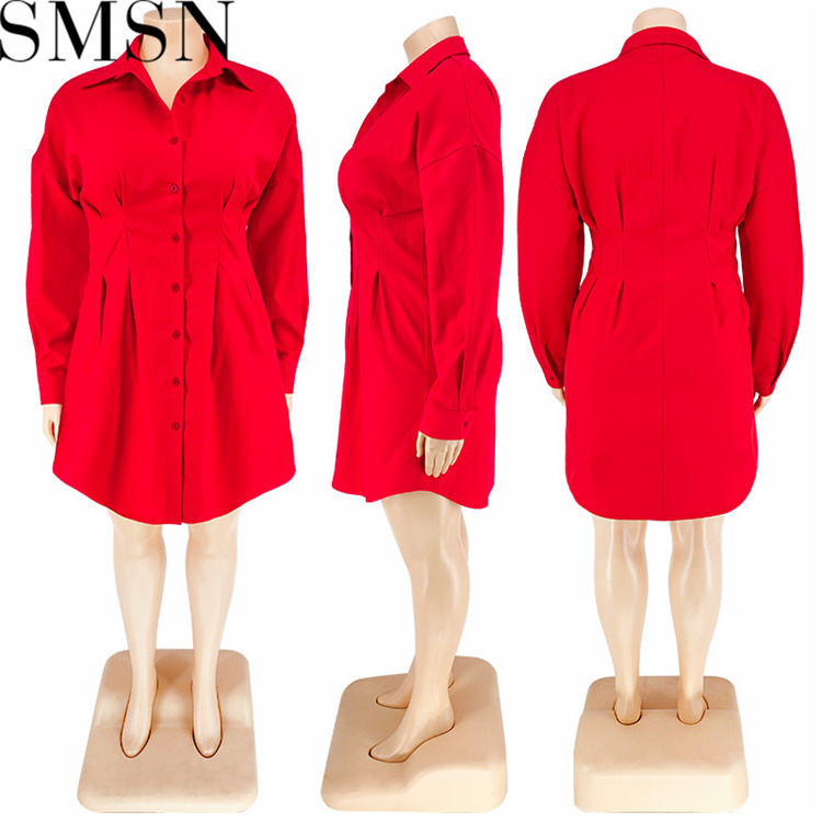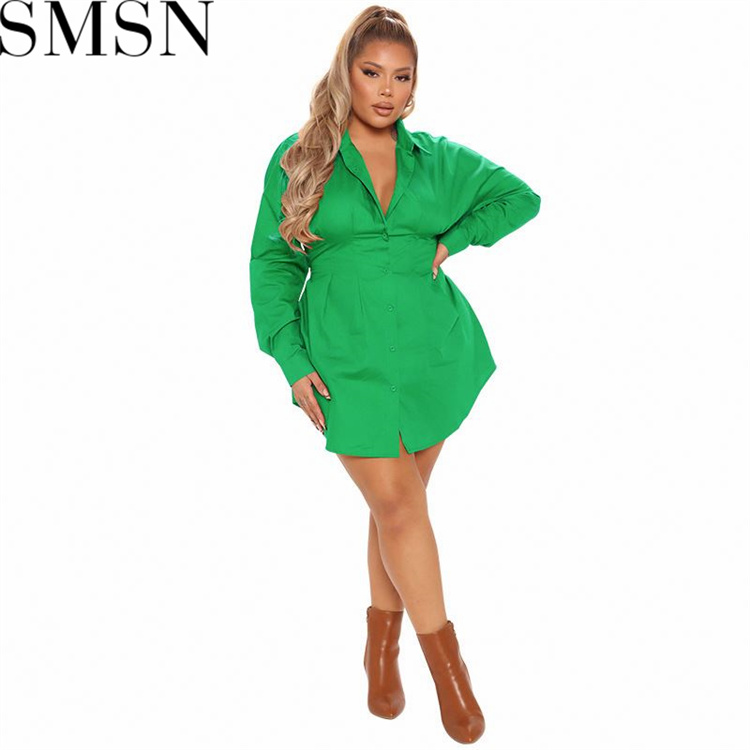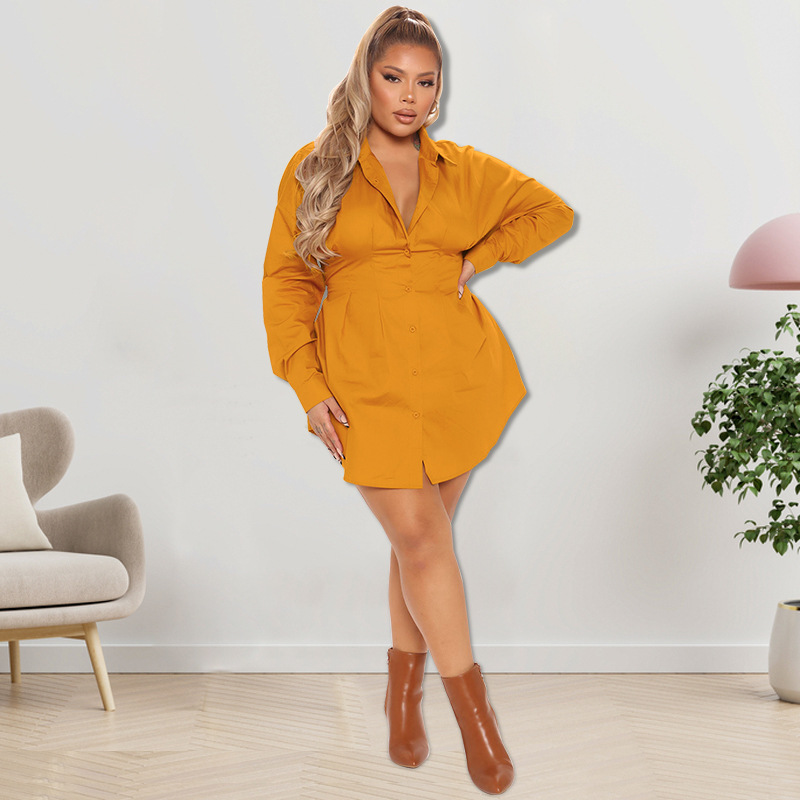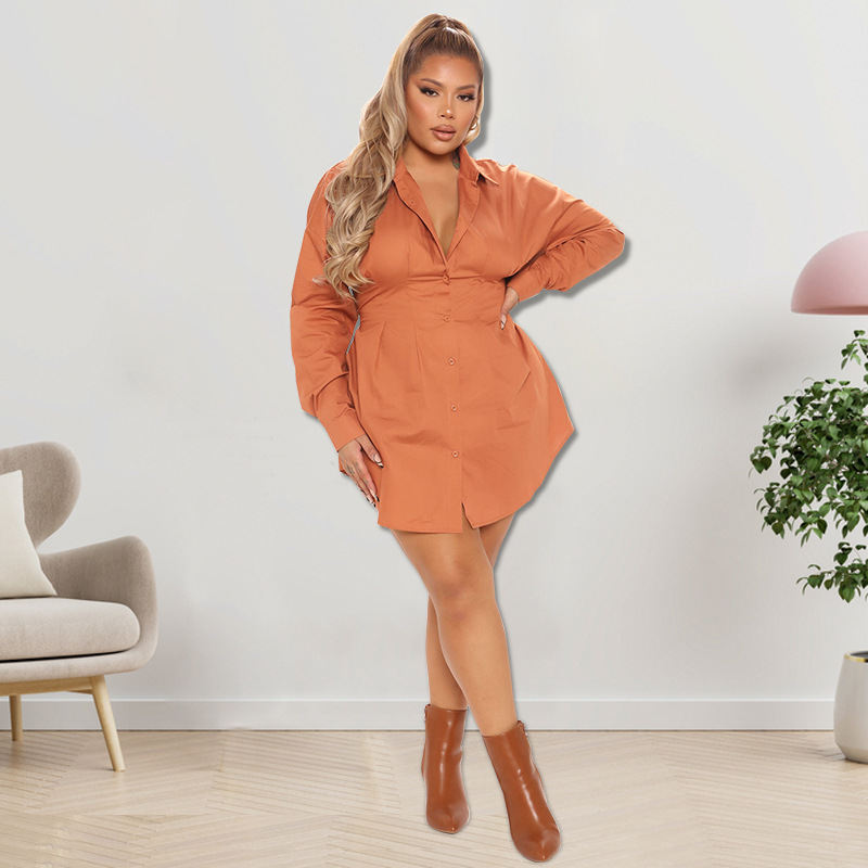 Plus Size Dress wholesale solid color autumn long sleeve long shirt dress