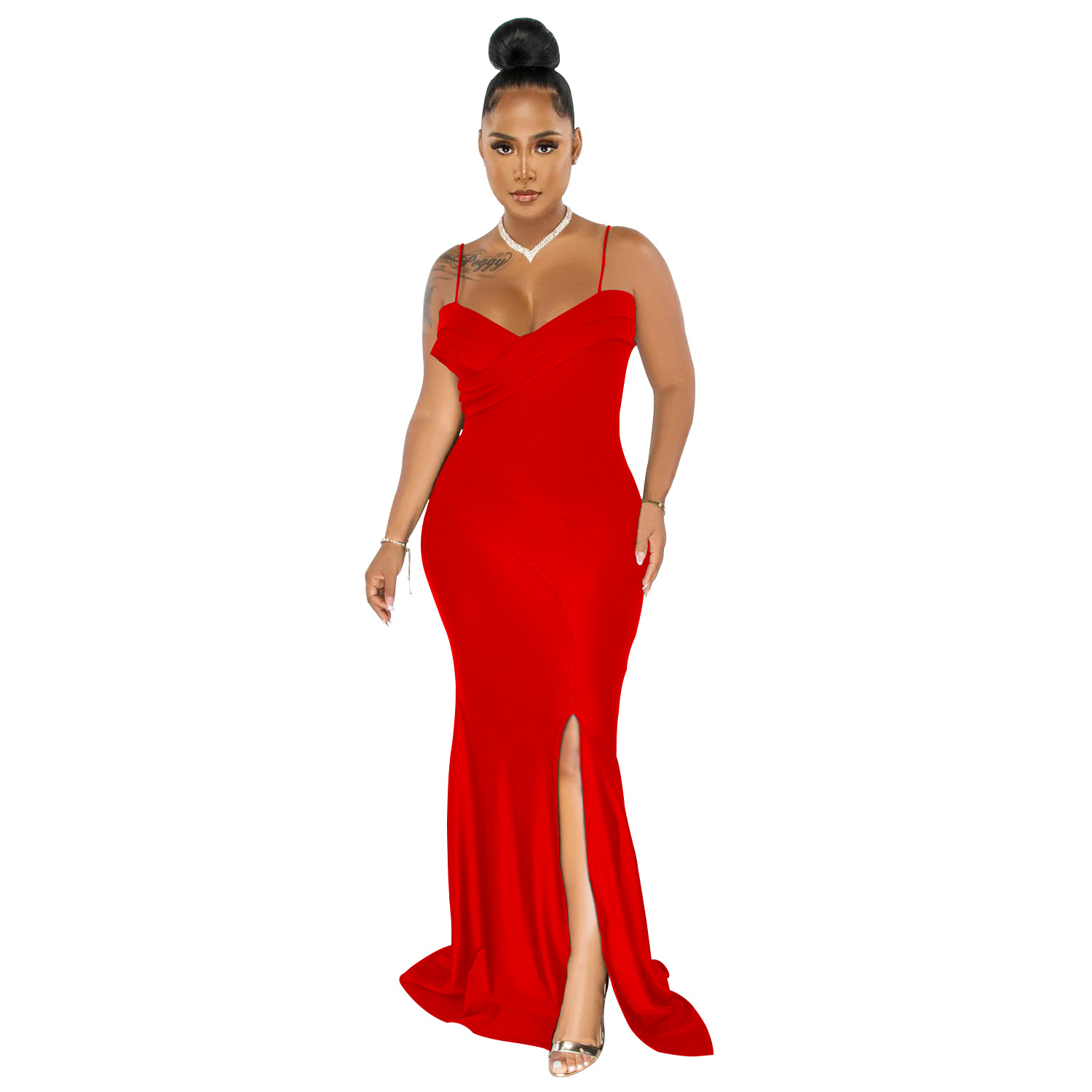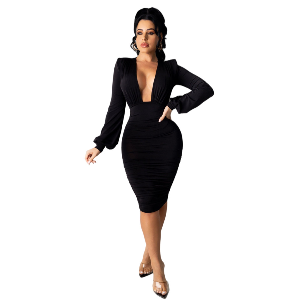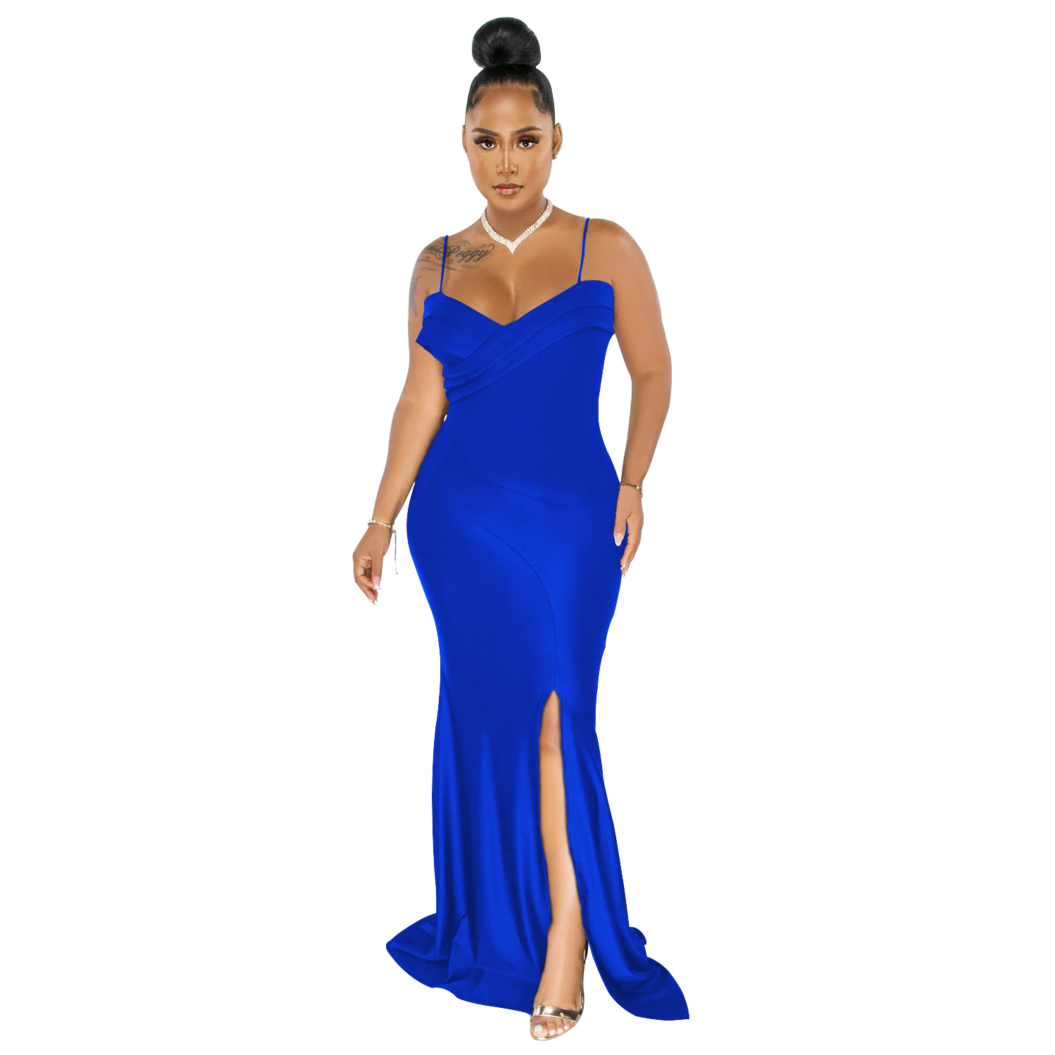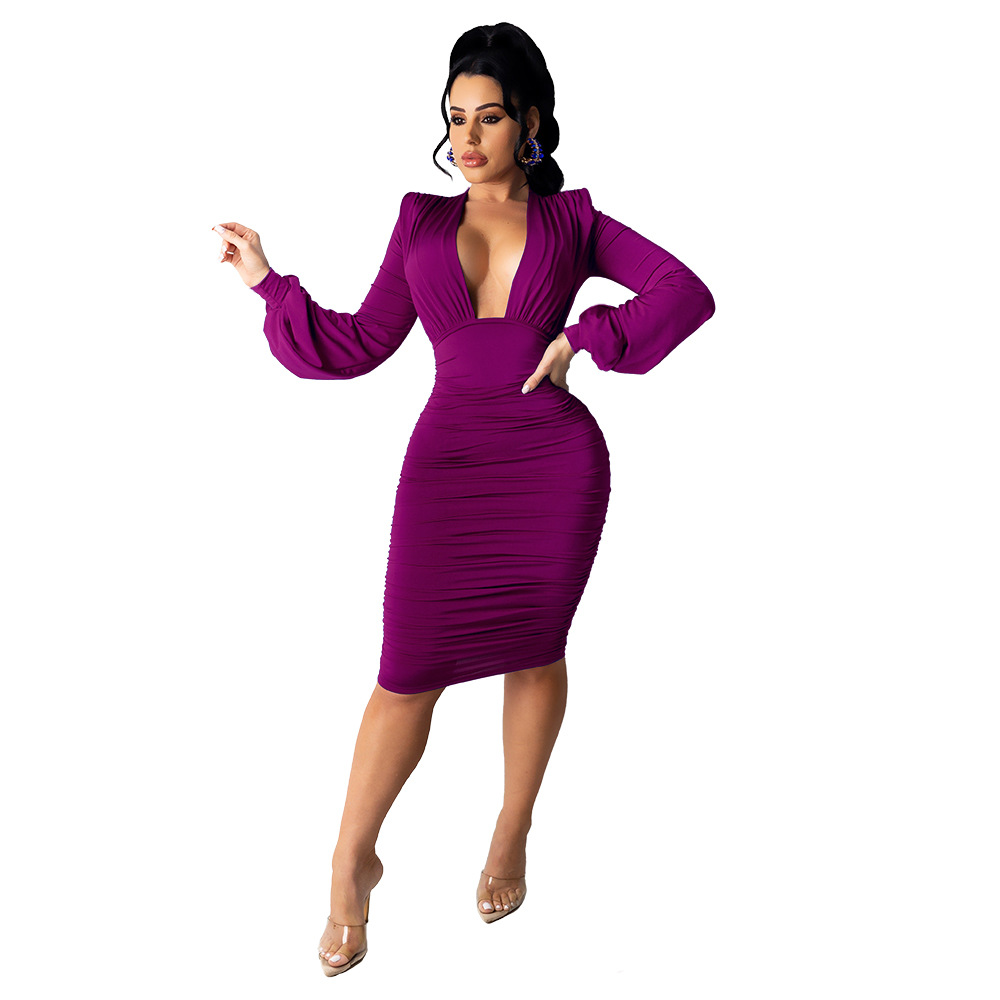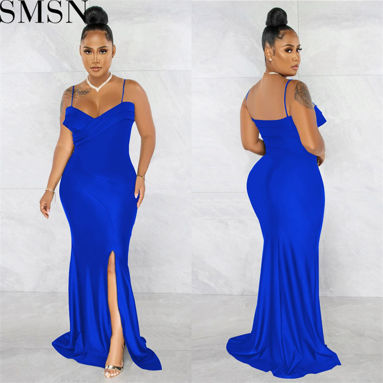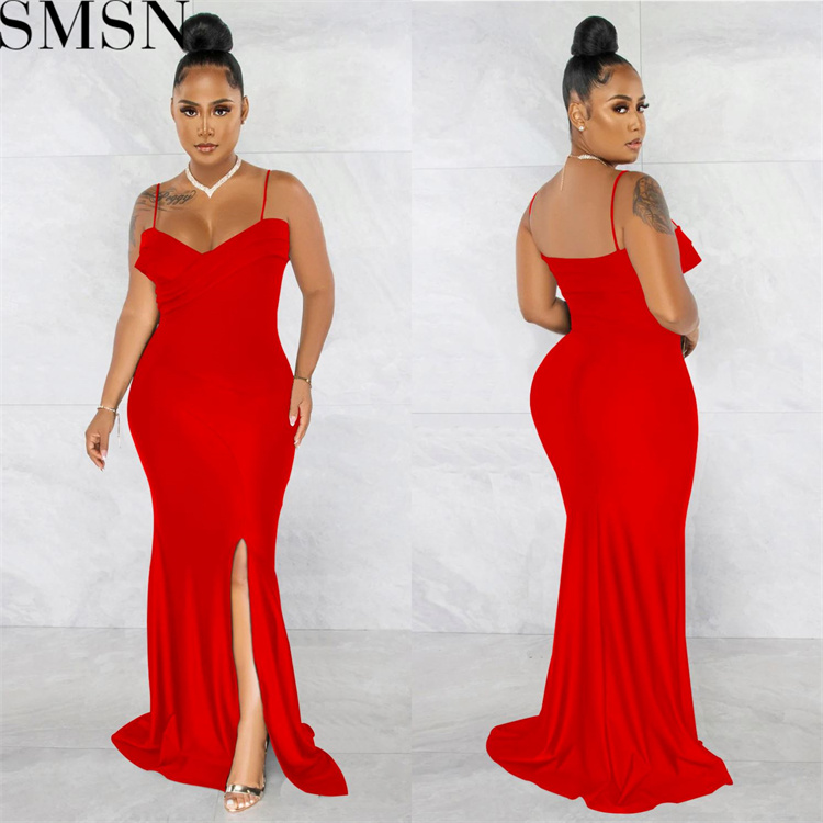 Plus Size Dress European and American fashion women wear suspender pleated wrapped chest solid color dress