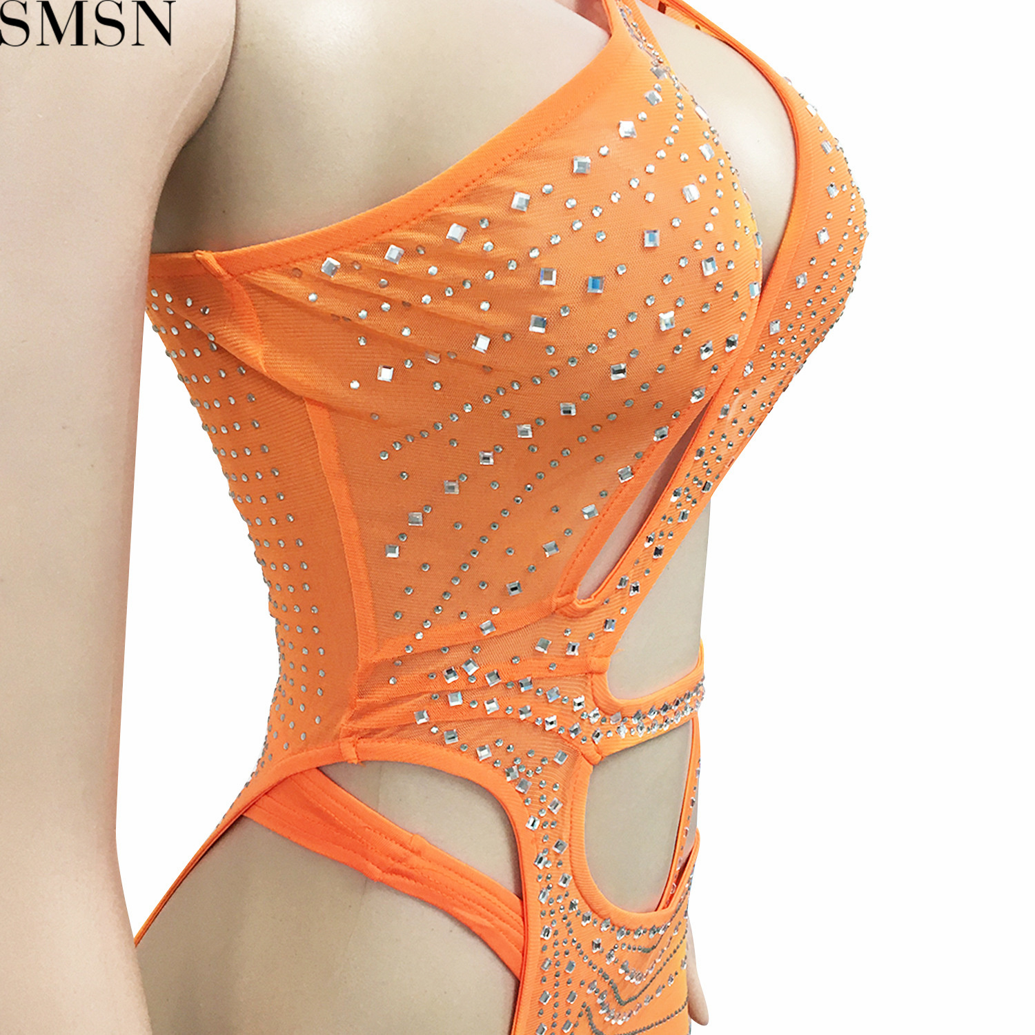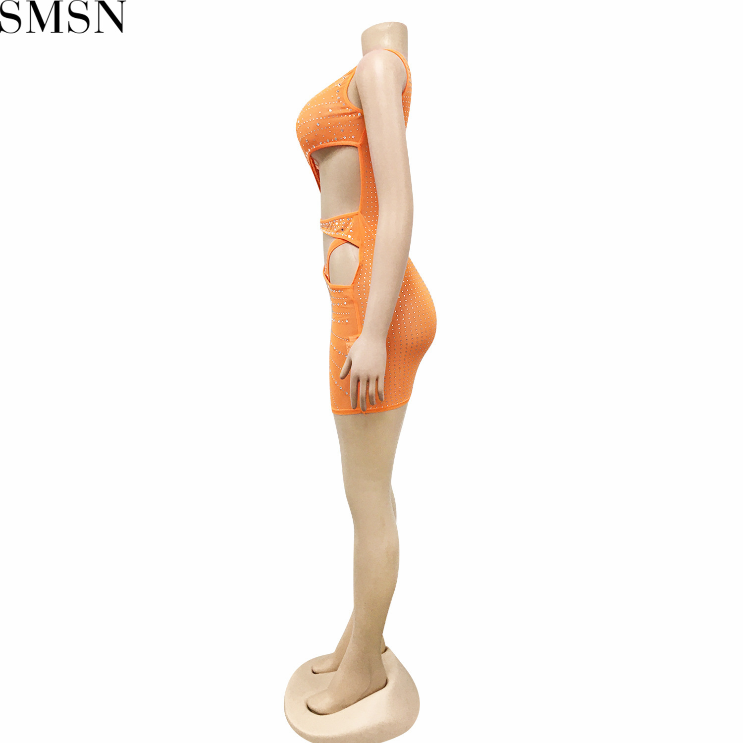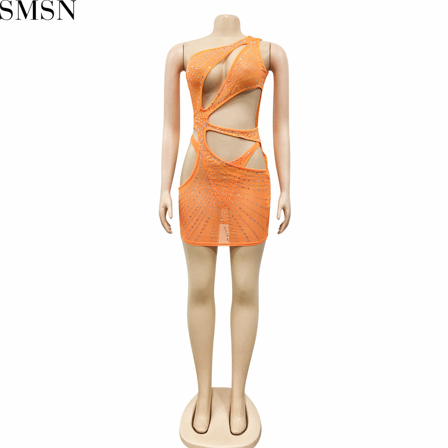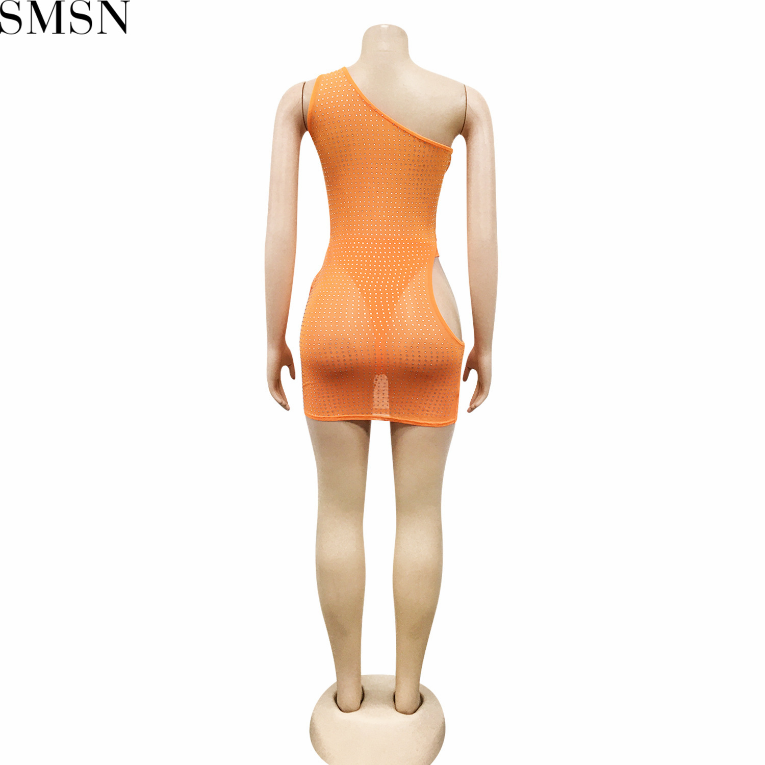 Sexy solid color women's clothing rhinestone mesh shoulder hollow dress plus size casual dress