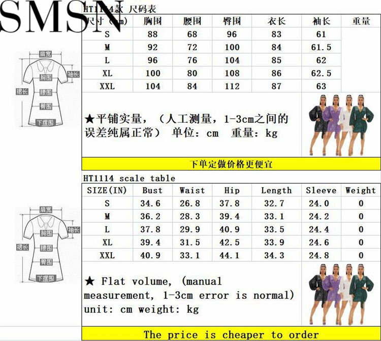 Plus Size Dress cross border sequin dress sequined V neck long sleeve nightclub sexy dress