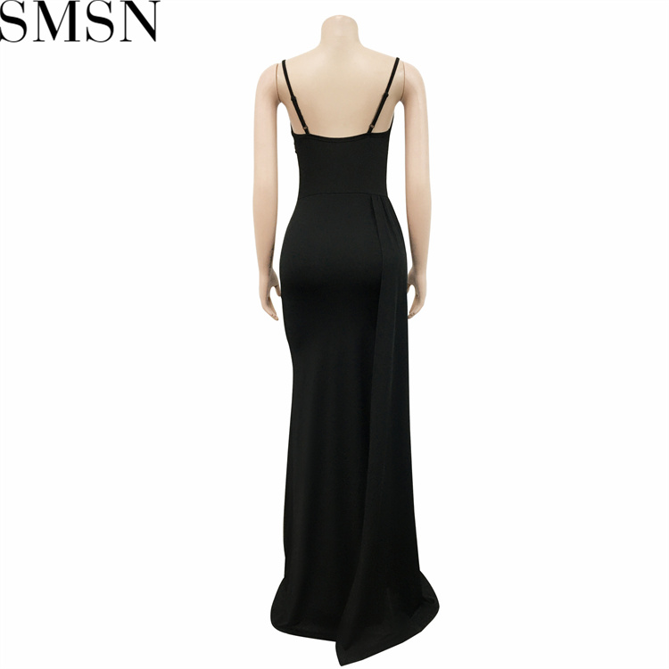 Plus Size Dress European and American sling solid color side drag side open dress for women