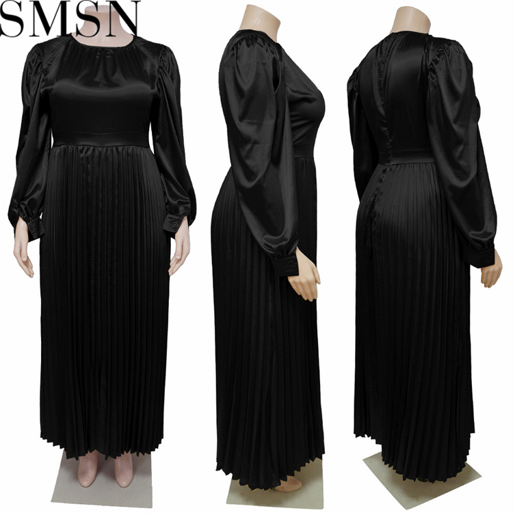 Plus Size Dress Amazon autumn and winter popular pleated round neck long dress long sleeve