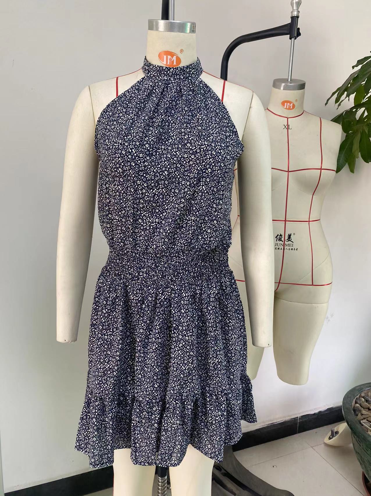 Fashion women dress Women's casual sleeveless halter dress in summer Bohemian print