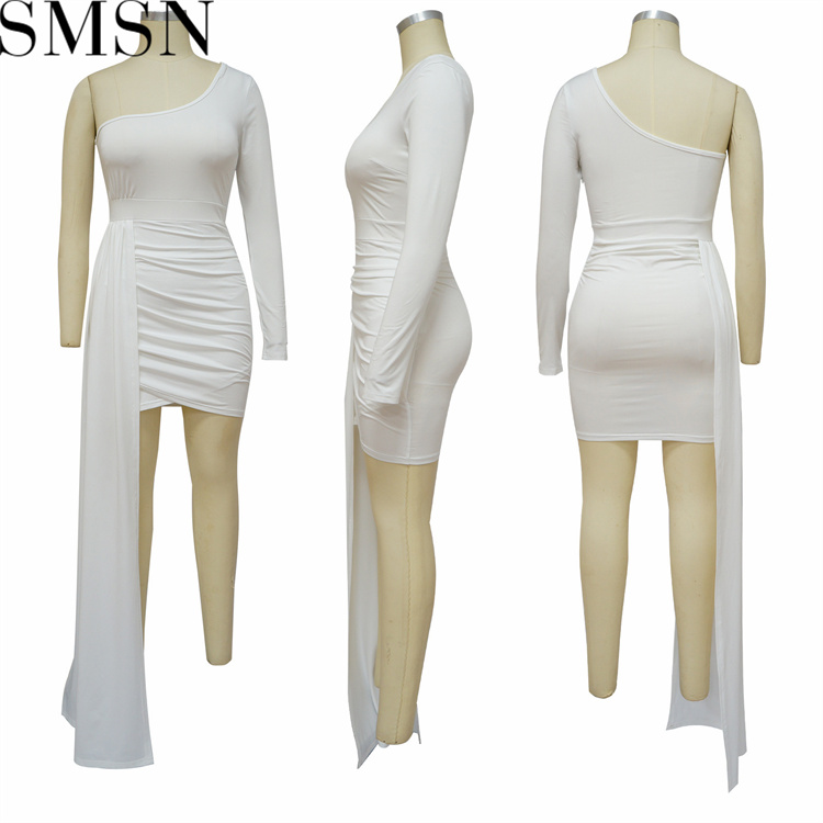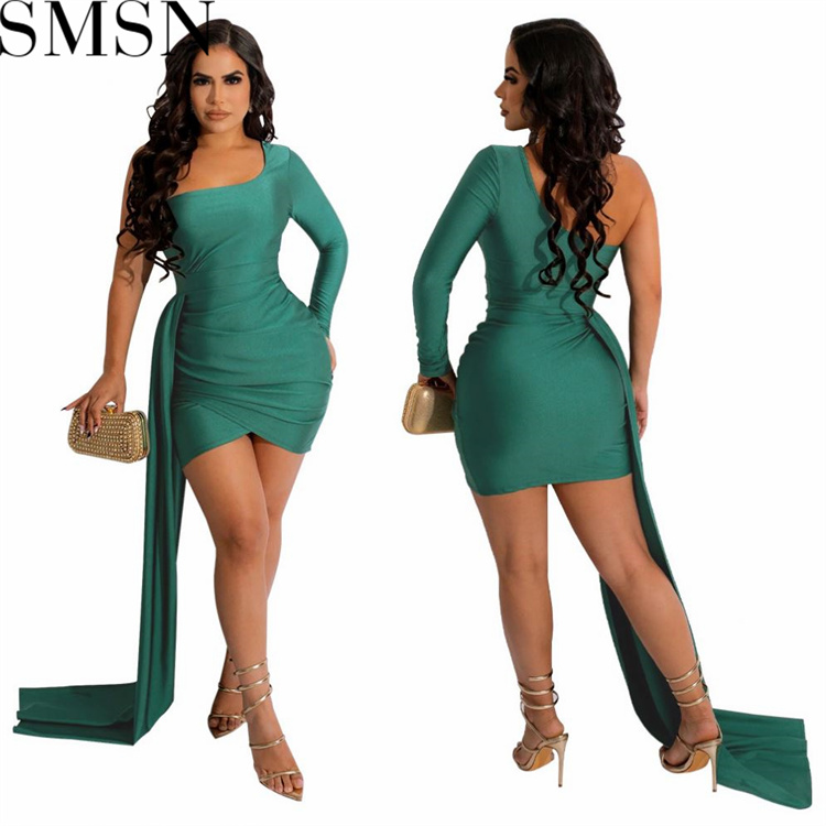 Elegant Dresses 2022 fashion casual oblique shoulder irregular solid color dress Party evening dress