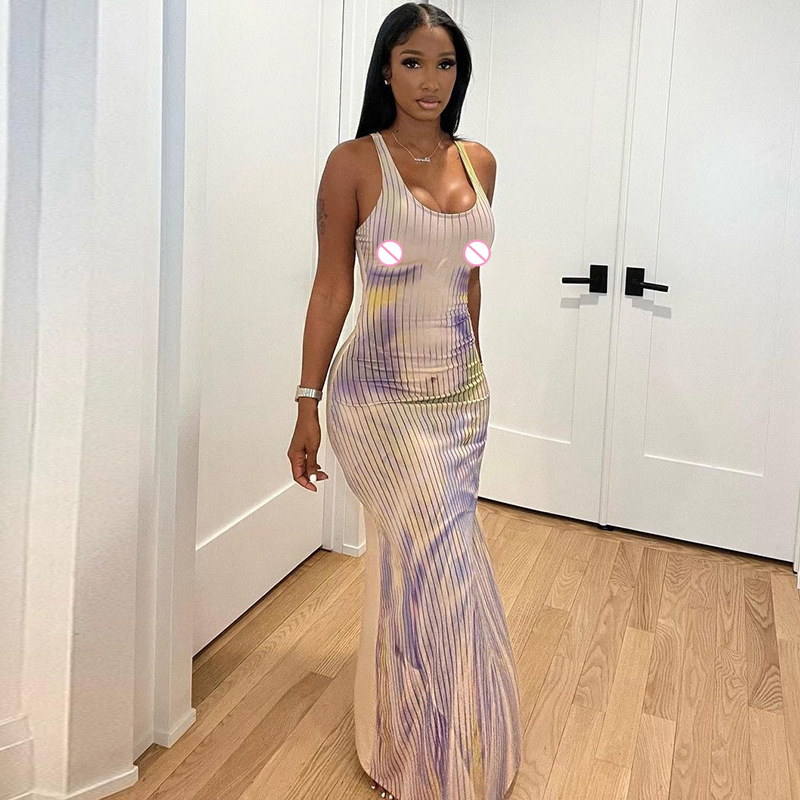 Women'S Round Neck Gradient Print Sleeveless Irregular Hem Dress