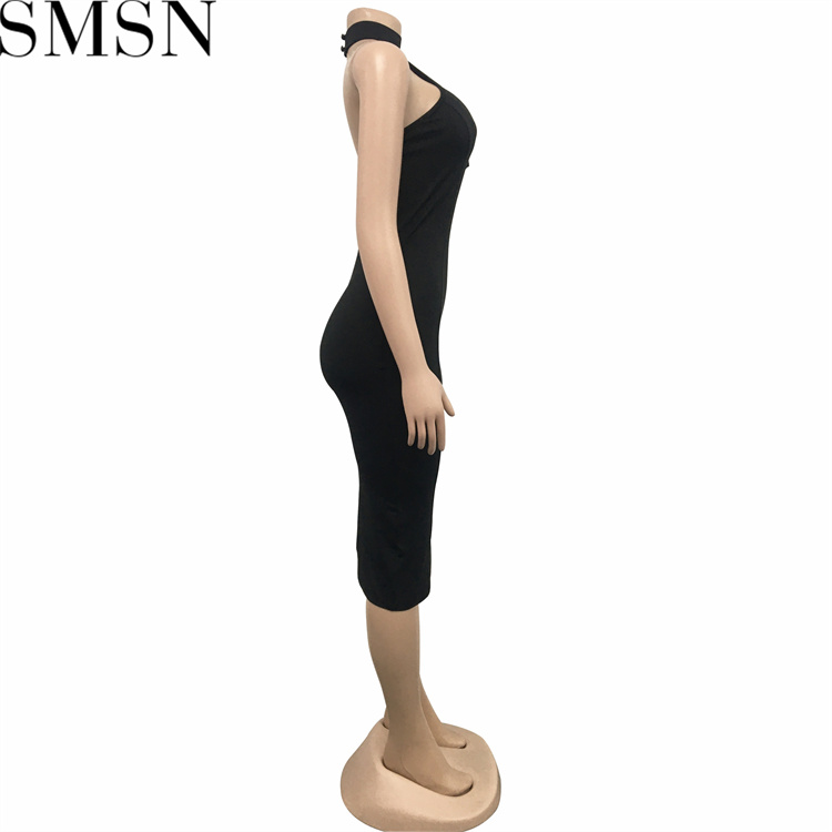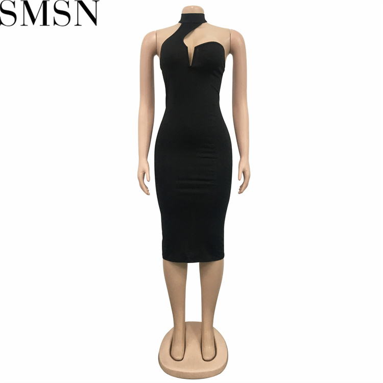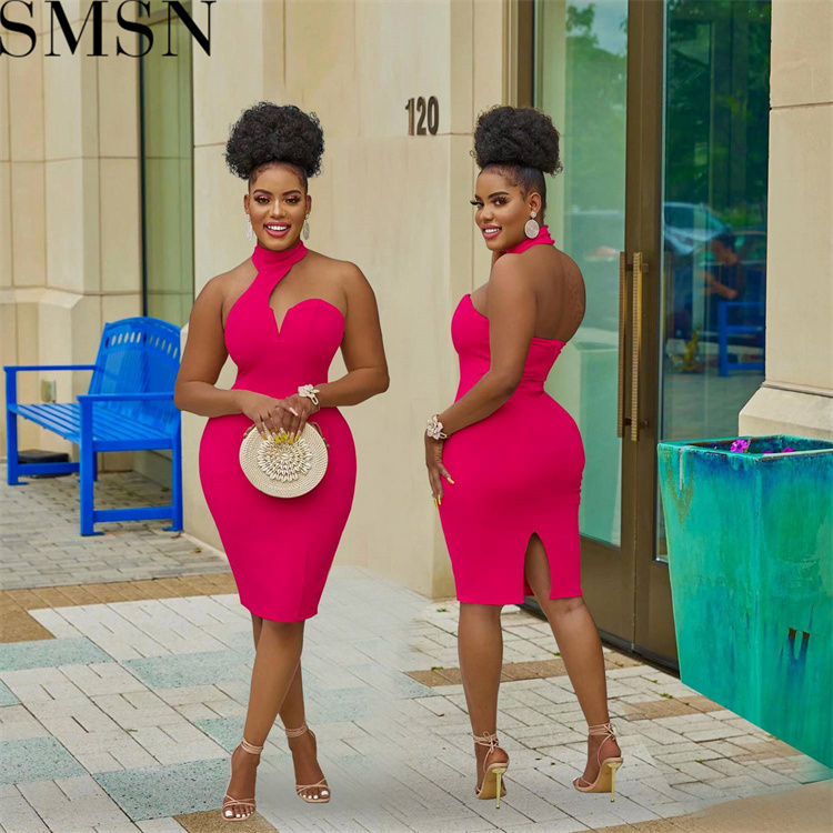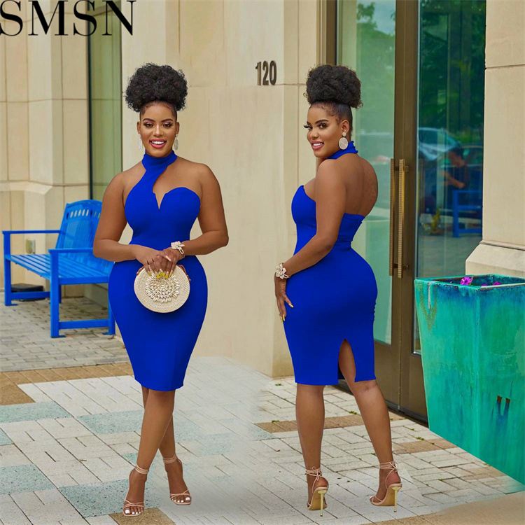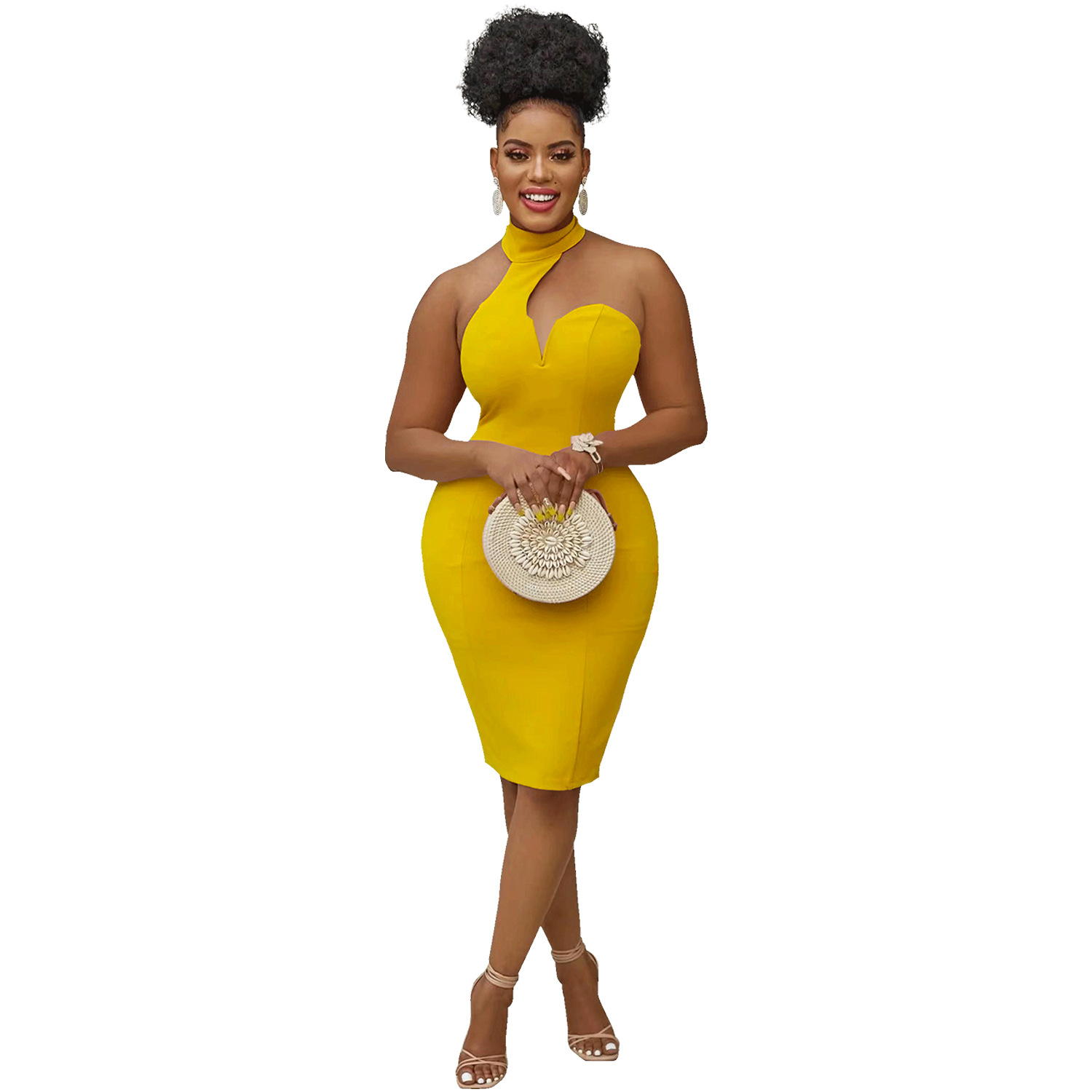 Plus Size Dress fashion pure color halter wrapped chest sleeveless cold shoulder dress