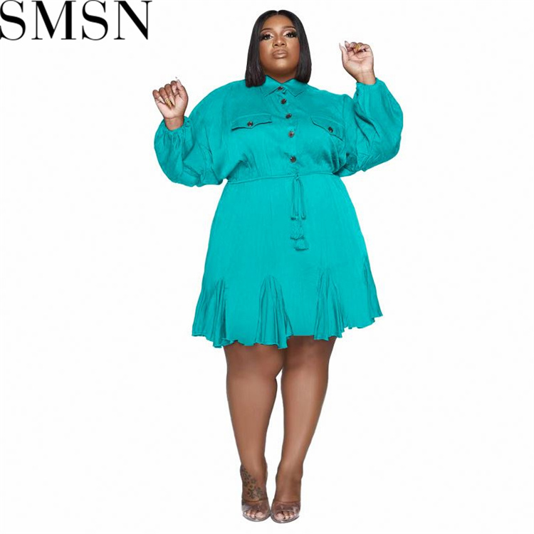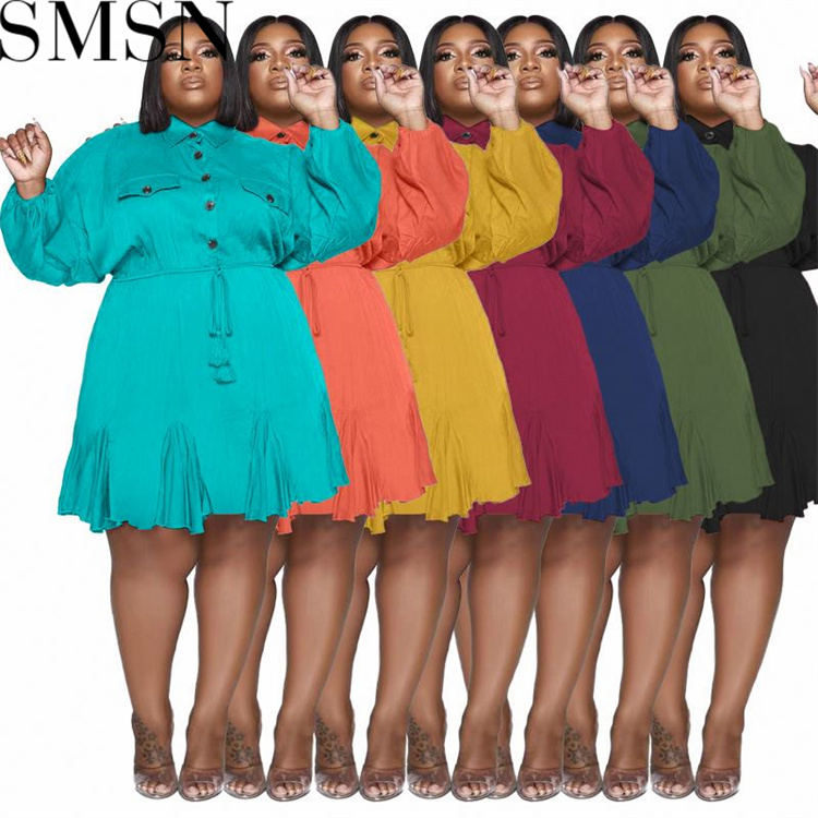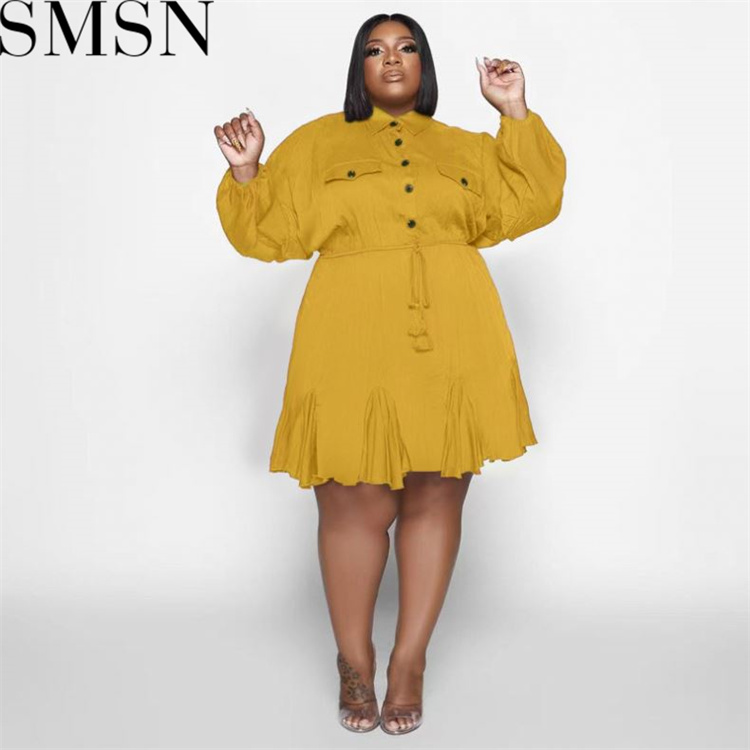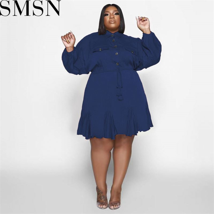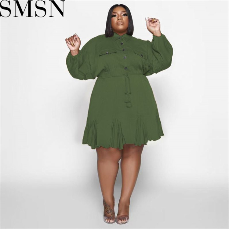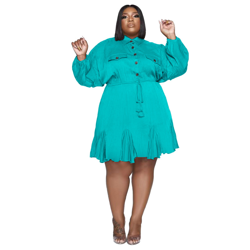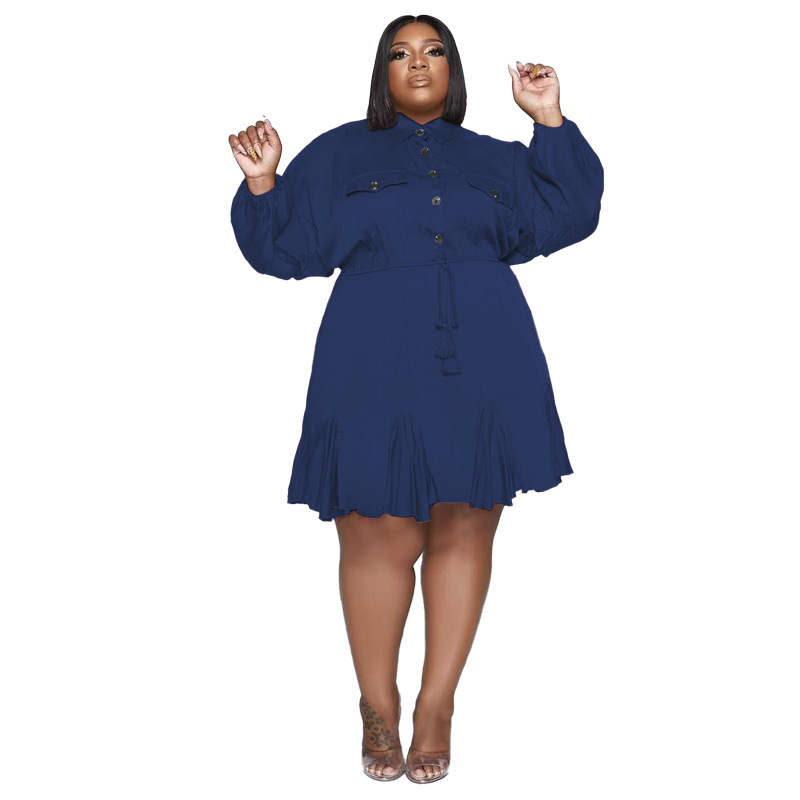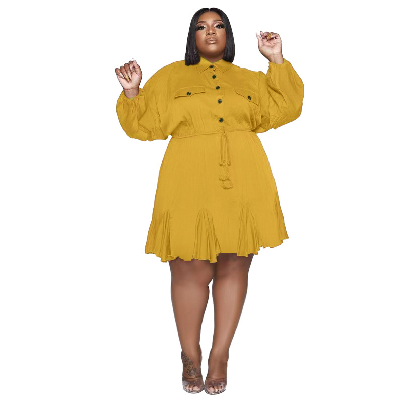Plus Size Dress Amazon Autumn and Winter New Solid Colored Lapel Fashion Sexy Big Swing Dress Large Size Women Dress