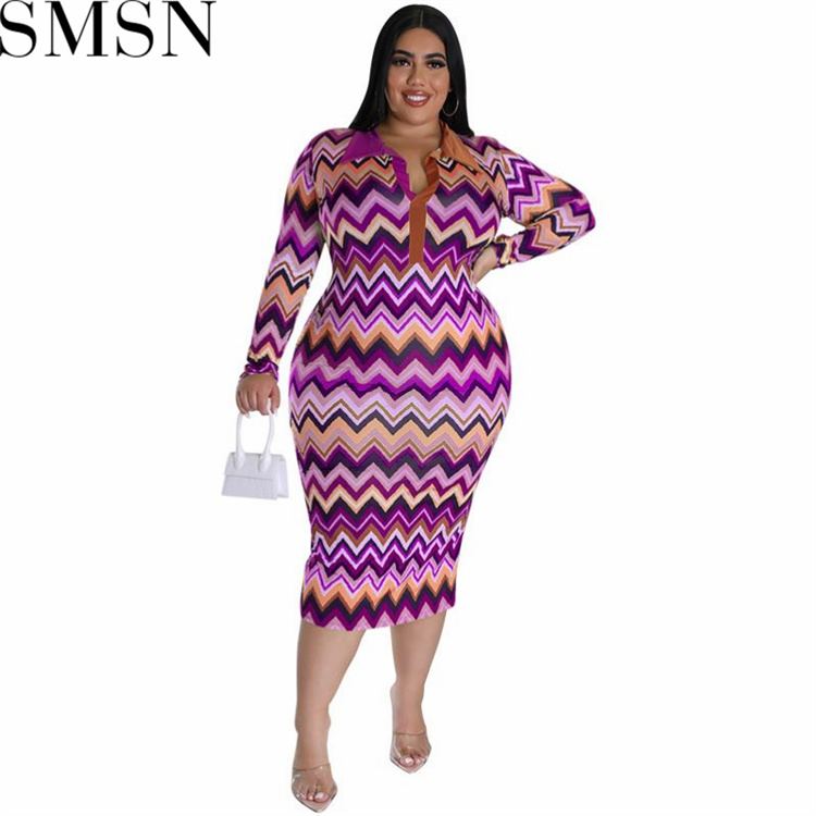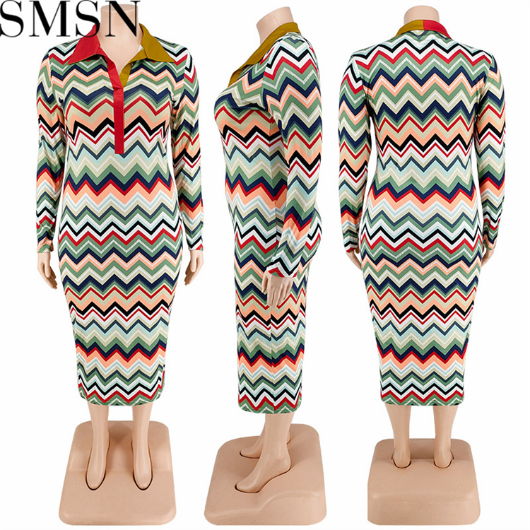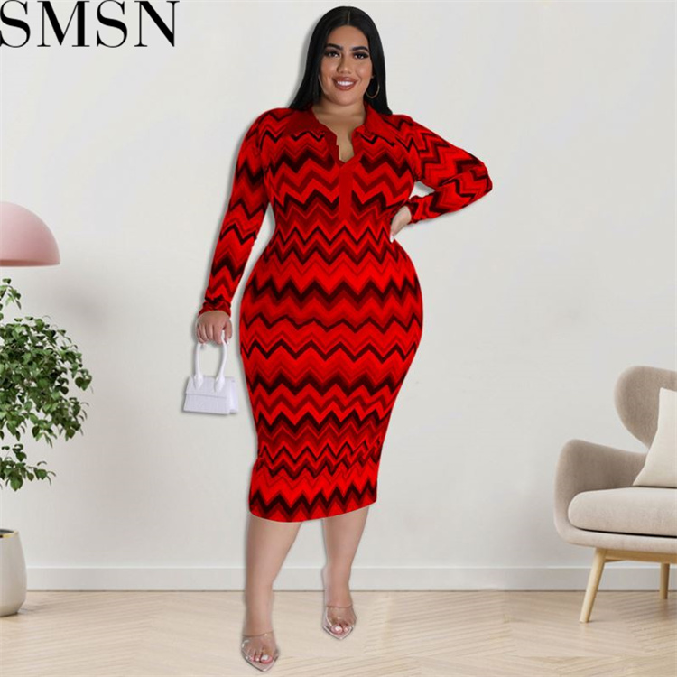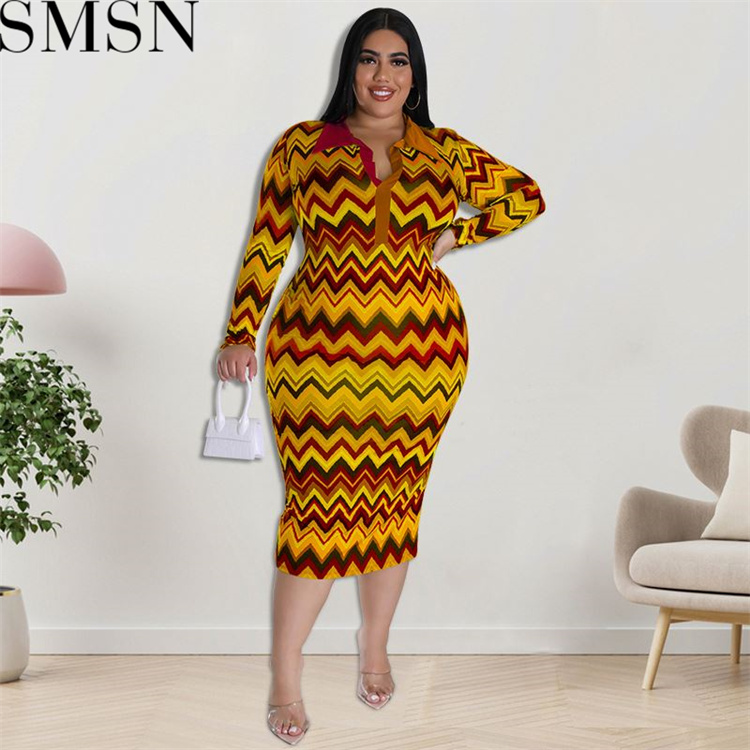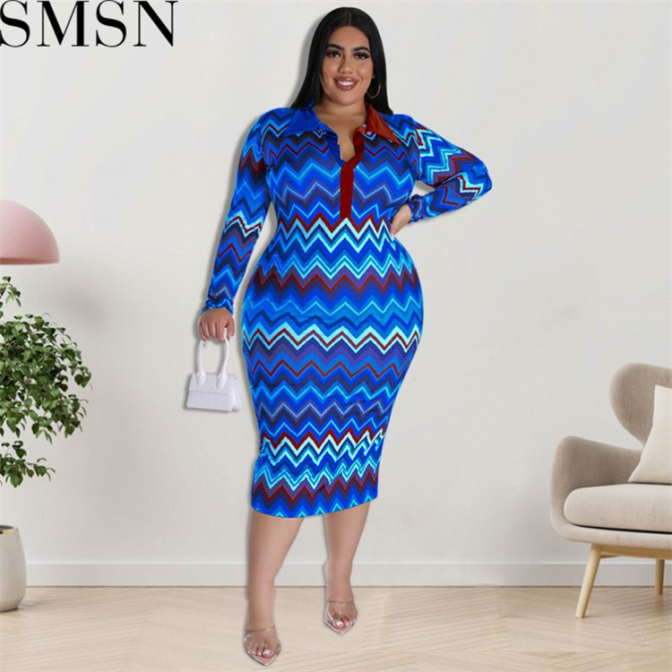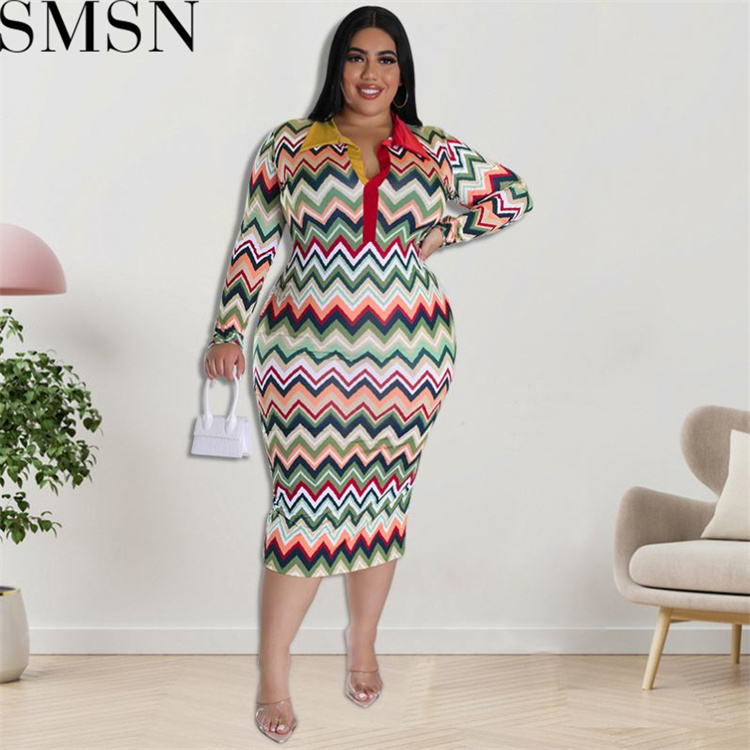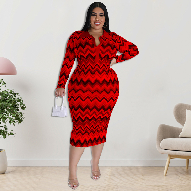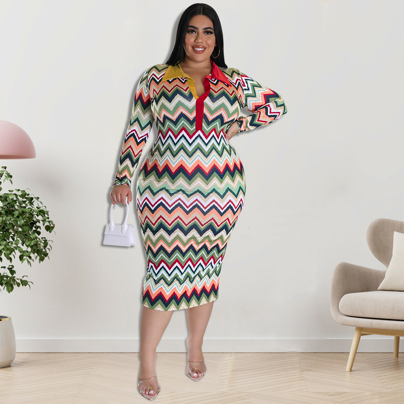 Plus Size Dress European and American long sleeve collar printed open tube fashion dress
