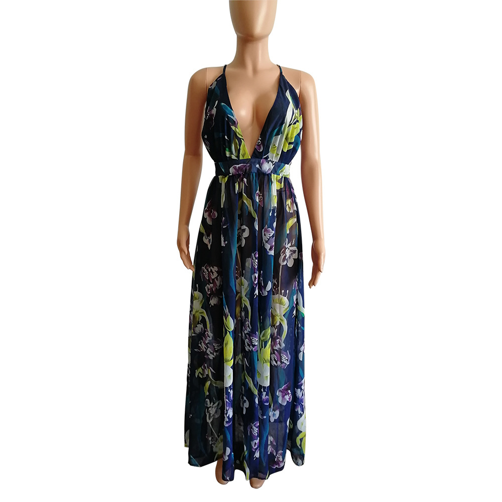 Plus Size Dress Amazon Ebay popular European and American deep V neck backless chiffon dress