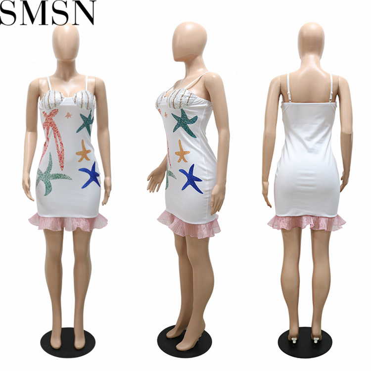 Plus Size Dress European and American sexy strap sequins lace bag buttock skirt