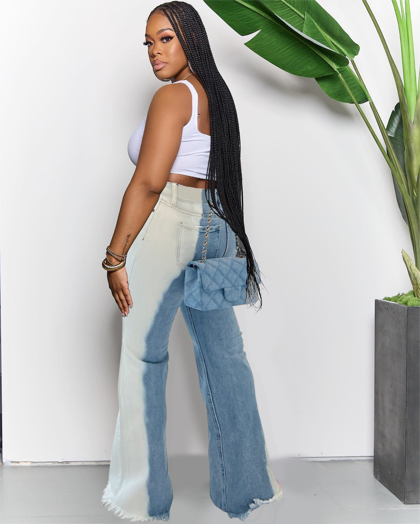 Stretch gradient color blocking micro flare buttocks sexy jeans