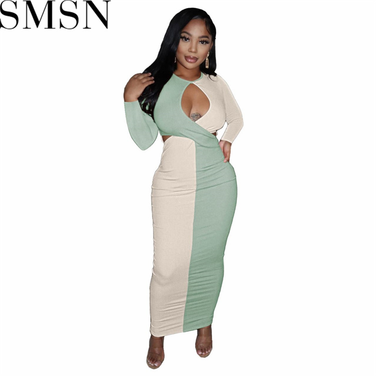 Plus Size Dress Amazon new autumn winter assorted colors thread hollow waist sexy long dress