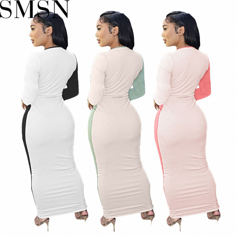 Women Clothing Dress sexy dress Women U-neck ribbed dress