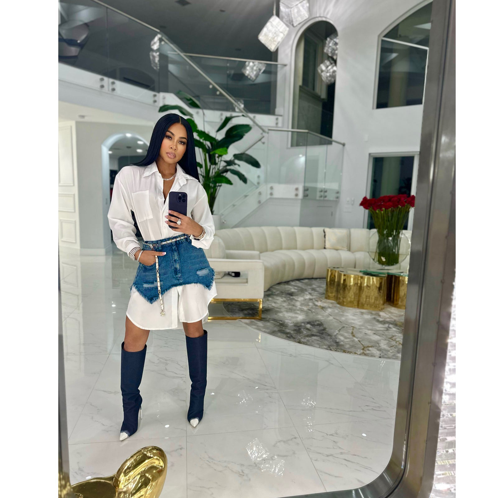 Fashion Denim Nimi Skirt Long Sleeve Casual Shirt Dress 2 Piece Set
